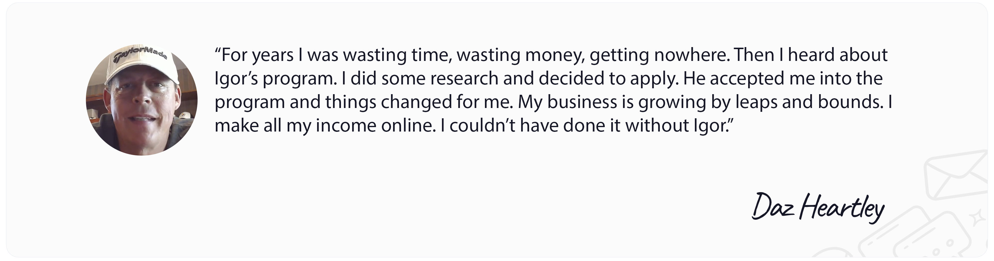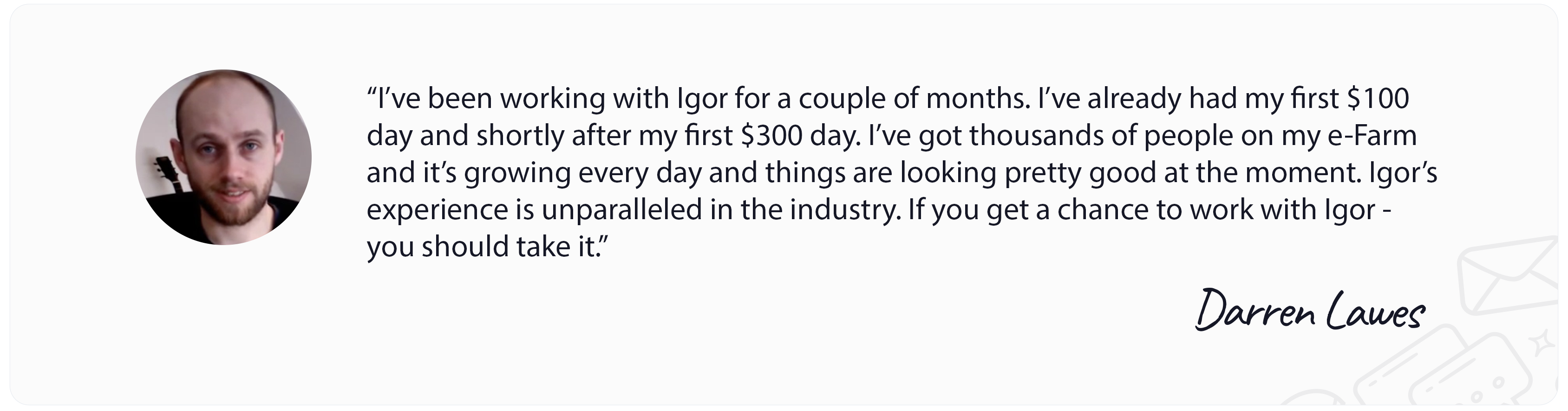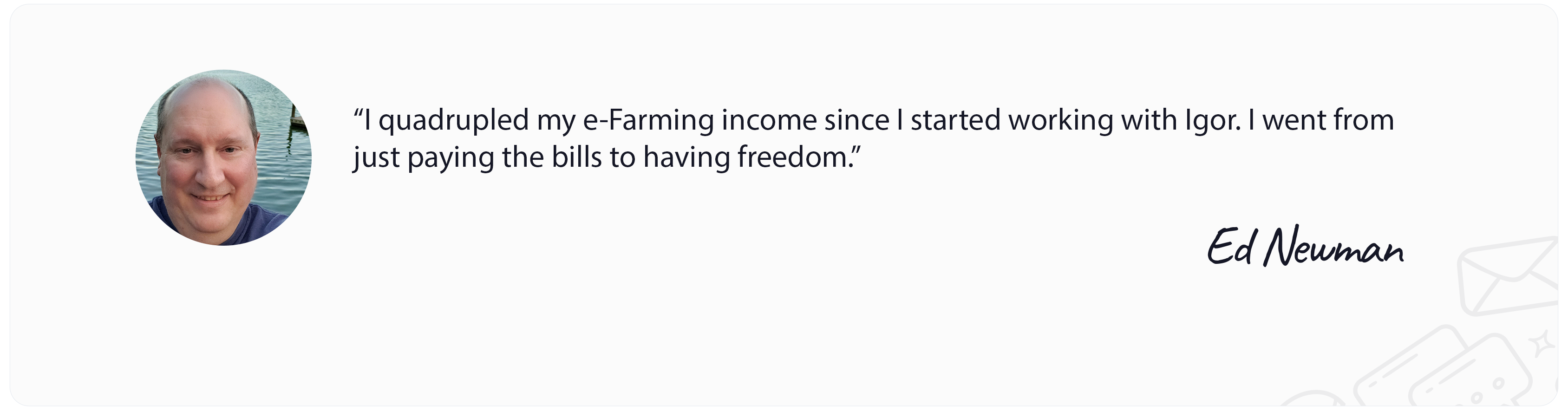 Igor has already helped thousands kickstart their own profitable e-Farming online business through his best-selling program The 30-Day e-Farming Challenge.